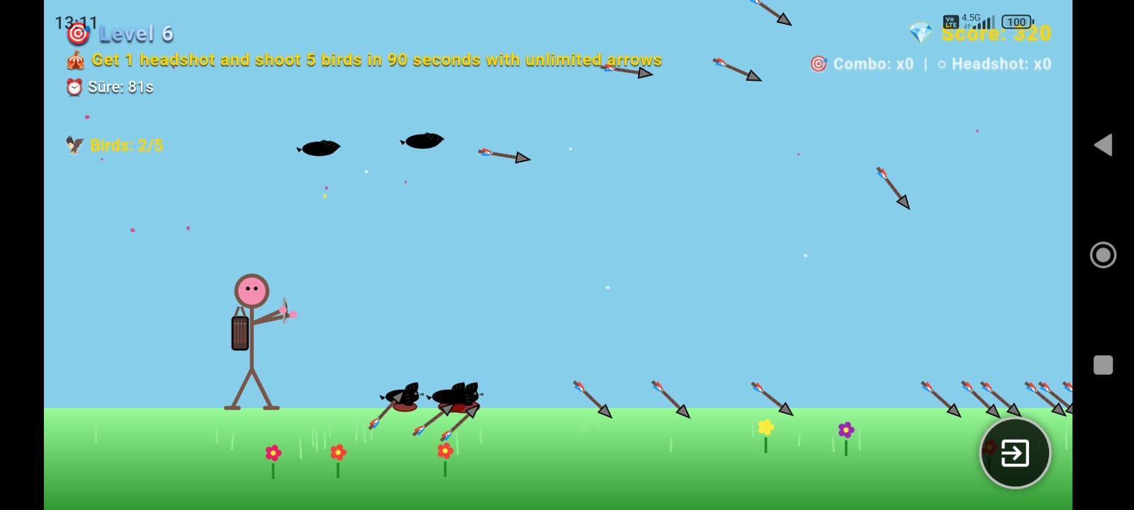 Aim carefully and release arrows at flying birds moving across the screen. Each successful hit scores points based on accuracy and timing. Master the realistic physics to become an archery champion!